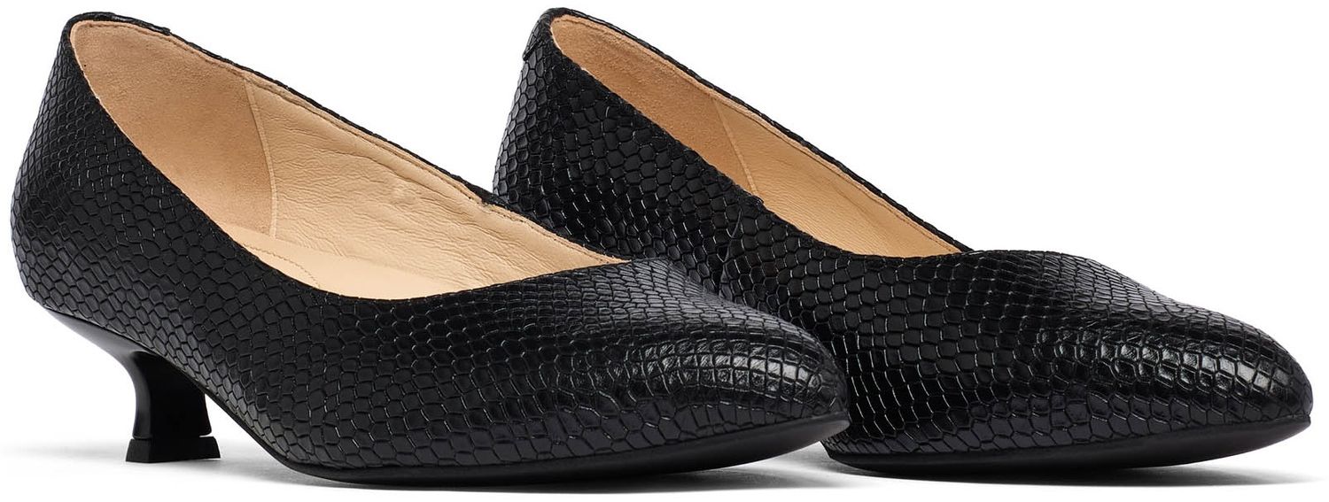Bunion-friendly heels Claudia is the ultimate on-trend pointed-toe court heel, crafted in luxurious Black Croc Leather and featuring a sleek kitten heel that offers the perfect lift with all-day comfort. Effortlessly versatile, these chic heels transition seamlessly from work to play, quickly becoming a staple in your fashion rotation.