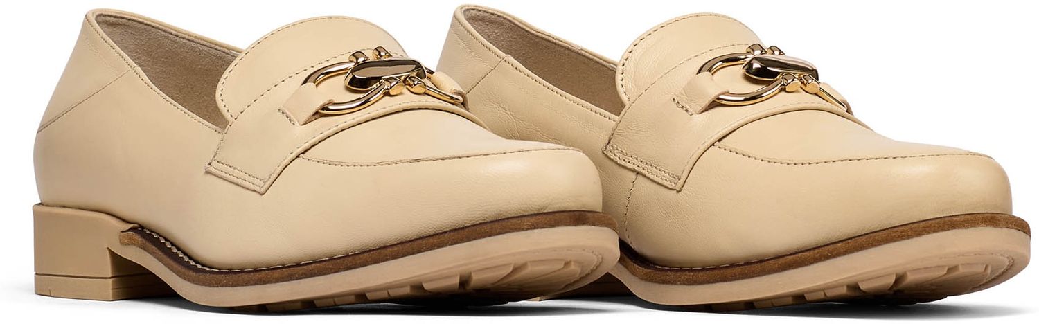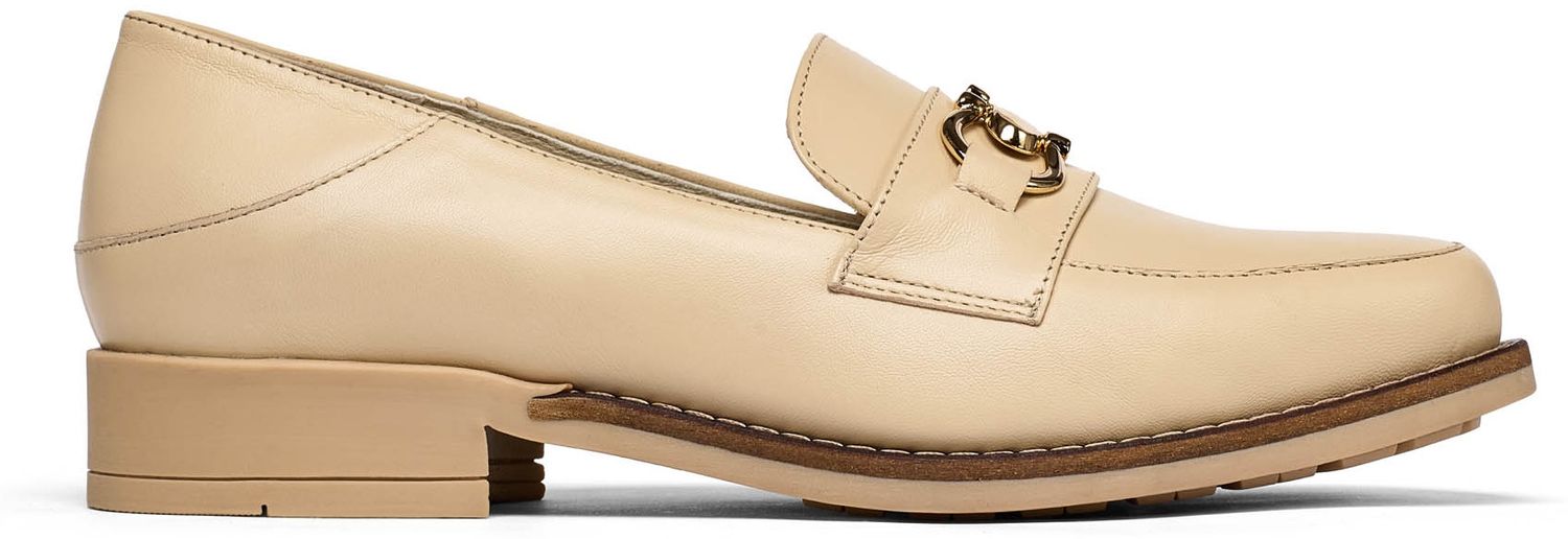 Bold, elegant, and oh so comfortable - this chunky Meredith loafer in neutral leather is your new wardrobe staple. Its cushioned sole and modern silhouette are designed to keep your feet comfy and stylish from day to night. The luxurious gold horsebit detail will add a touch of sophistication to any look.