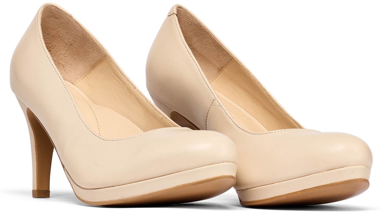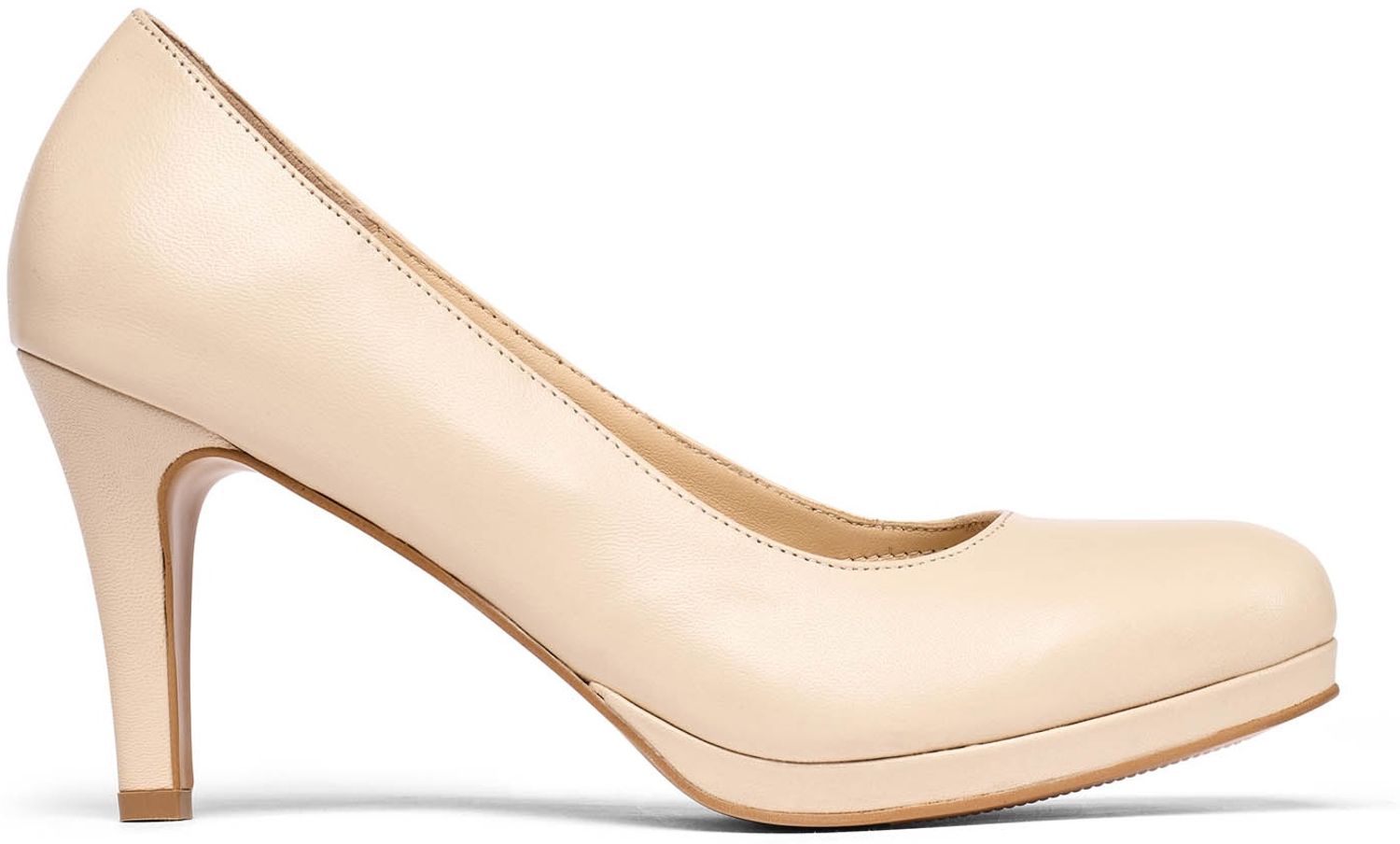 Produced using the finest goats leather, to flex and comfort where it's needed the most, this neutral high heel features extra width and volume in just the right places. With a luxury, leather-lined and gently padded, arch-supported insole, and a 3-inch heel with a half an inch platform, this heel provides the ultimate comfort that your feet will love.