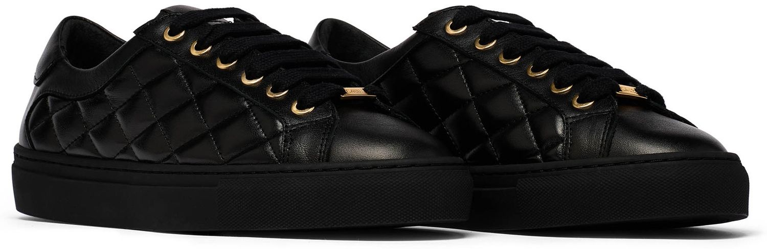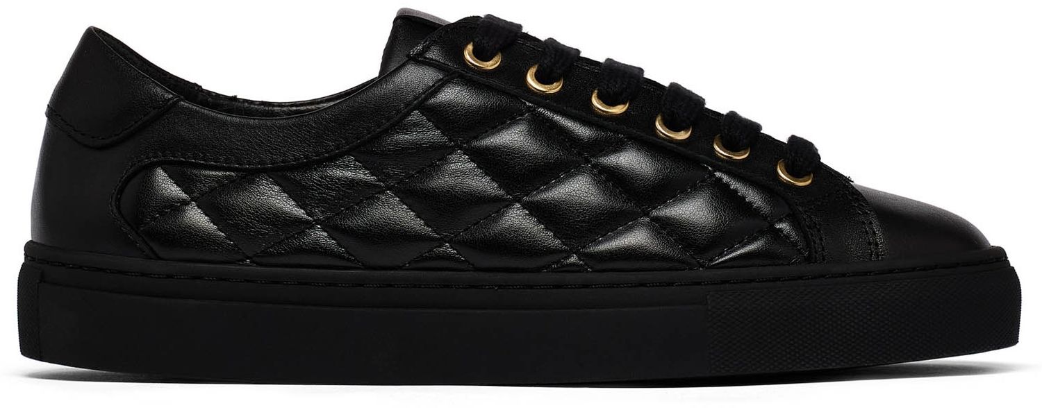 Let's take the classic black leather trainer and give it a little twist with this seasons on trend quilting. Packed full of features adding up to the ultimate comfort for bunion sufferers and women with wide feet, hammer toes or hallux rigidus. This includes a cushioned and arch supported insole, fully lined toe box (no seams!) and wider toe box plus lace ups so you can adjust the forefoot width if needed. Up to an EEE width fitting.