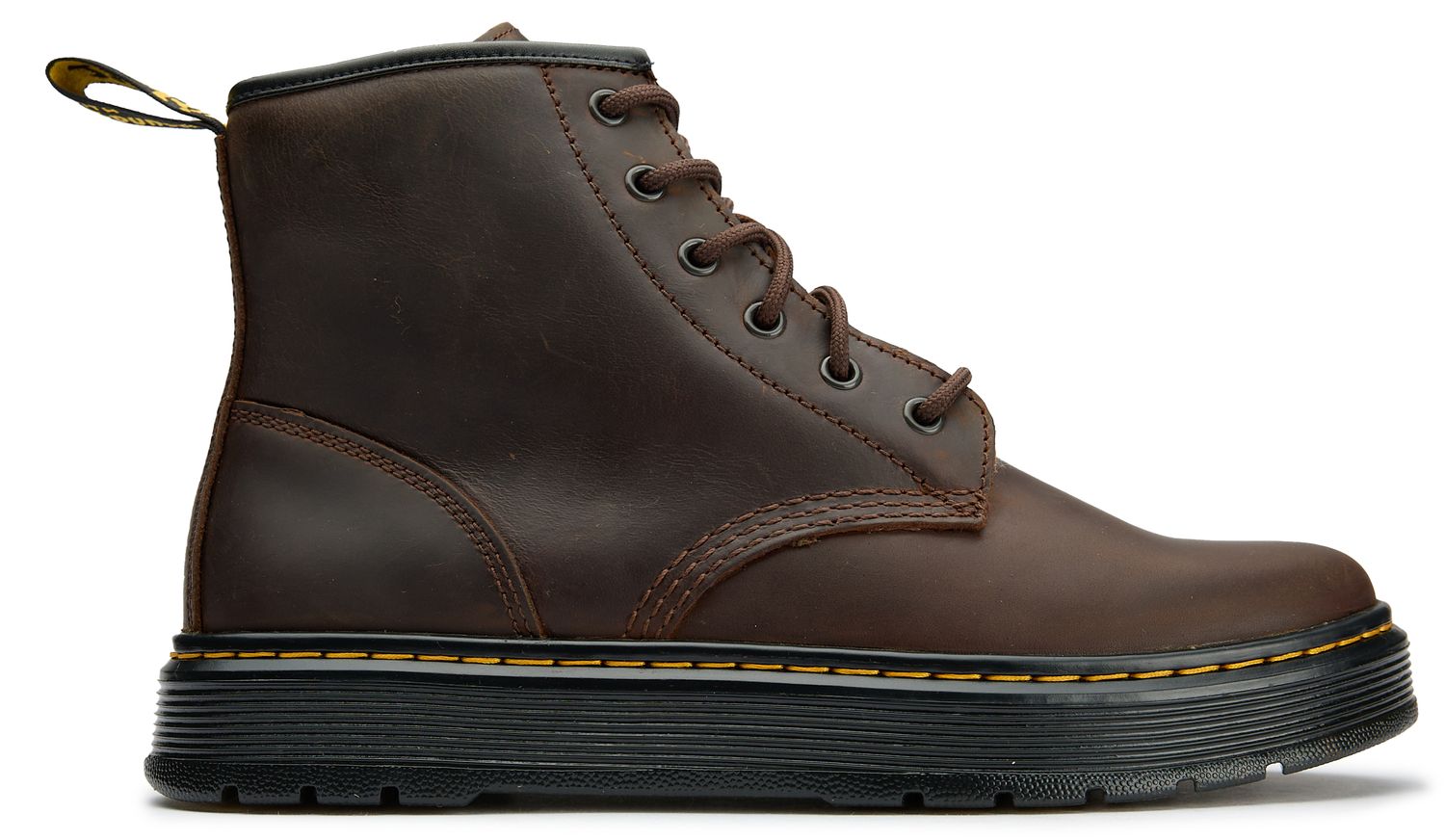 The Dr Martens Brookline Soft Chukka brings classic workwear vibes with a refined edge. Rich brown leather develops character with wear, while six black eyelets and a sturdy rubber sole ground this ankle boot in authentic Dr Martens craftsmanship. The textured leather upper adds subtle depth, making these chukkas equally at home with weekend denim or smart casual looks.