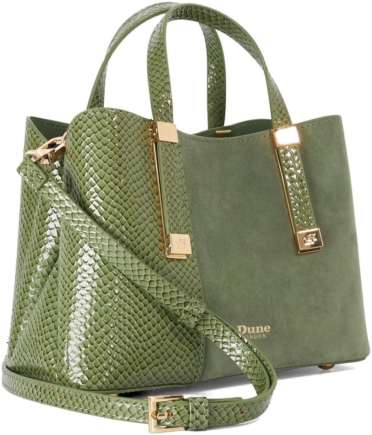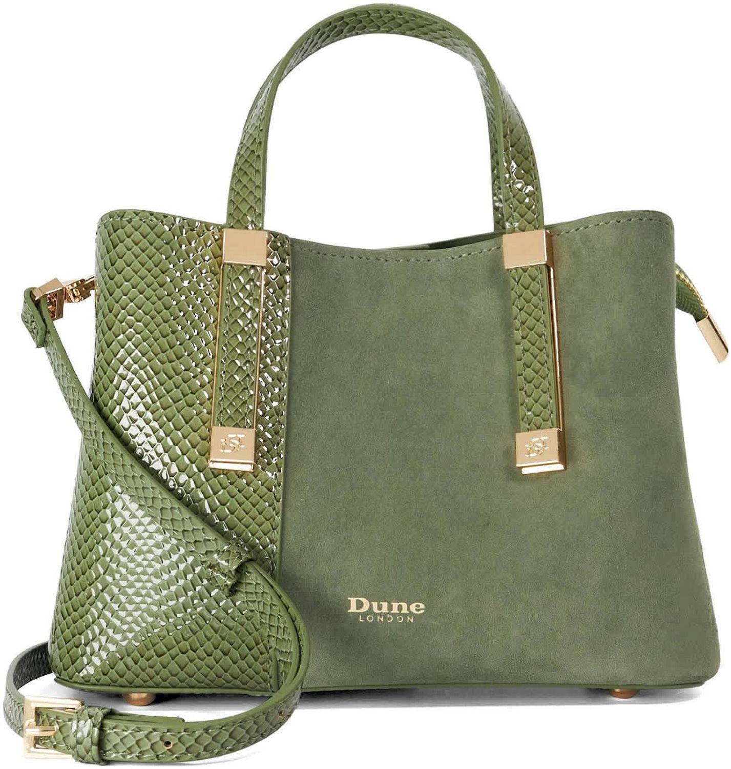 Boasting a boxy silhouette Dinkydorry features a textured upper with contrasting fabric for added style. This more compact version of our iconic Dorry still features a detachable crossbody strap for versatile carrying options as well as double grab handles and gold hardware. Finished with multiple internal compartments and distinctive Dune London branding this tote is ideal for office days and off-duty plans.