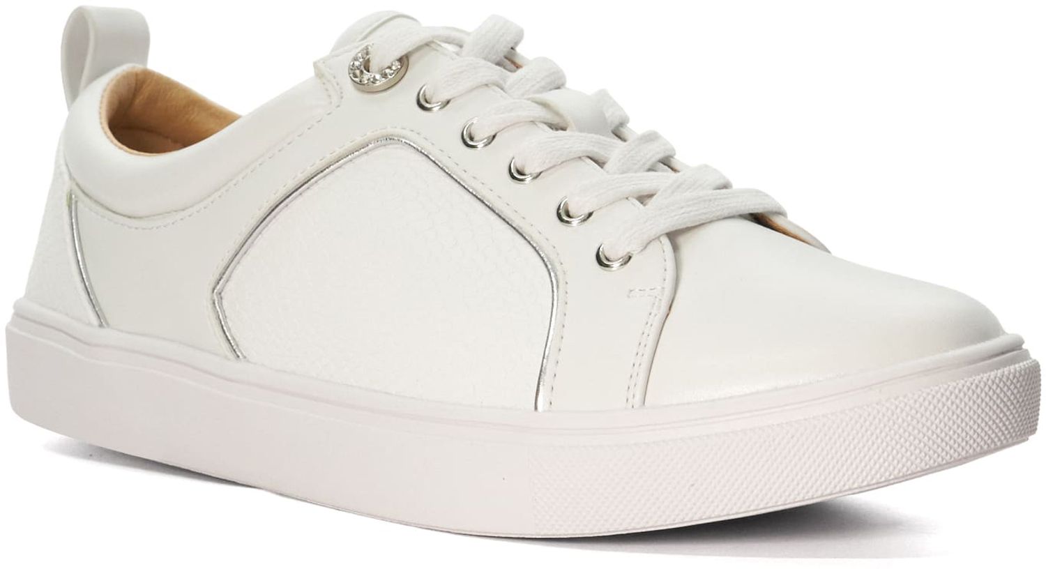 Update your off duty looks this season with Elsay a classic white sneaker. Crafted from high-quality material and accented with side panels and a branded rear pull tab this lace-up sneaker is an easy way to elevate your everyday style. Designed with embellished eyelets and set on a comfortable lightweight sole Elsay will make a versatile addition to your casual wardrobe. This timeless pair is sure to put a spring in your step.
