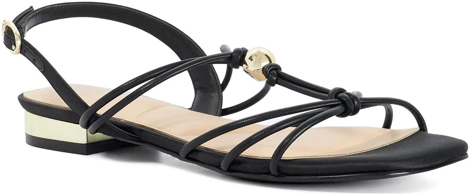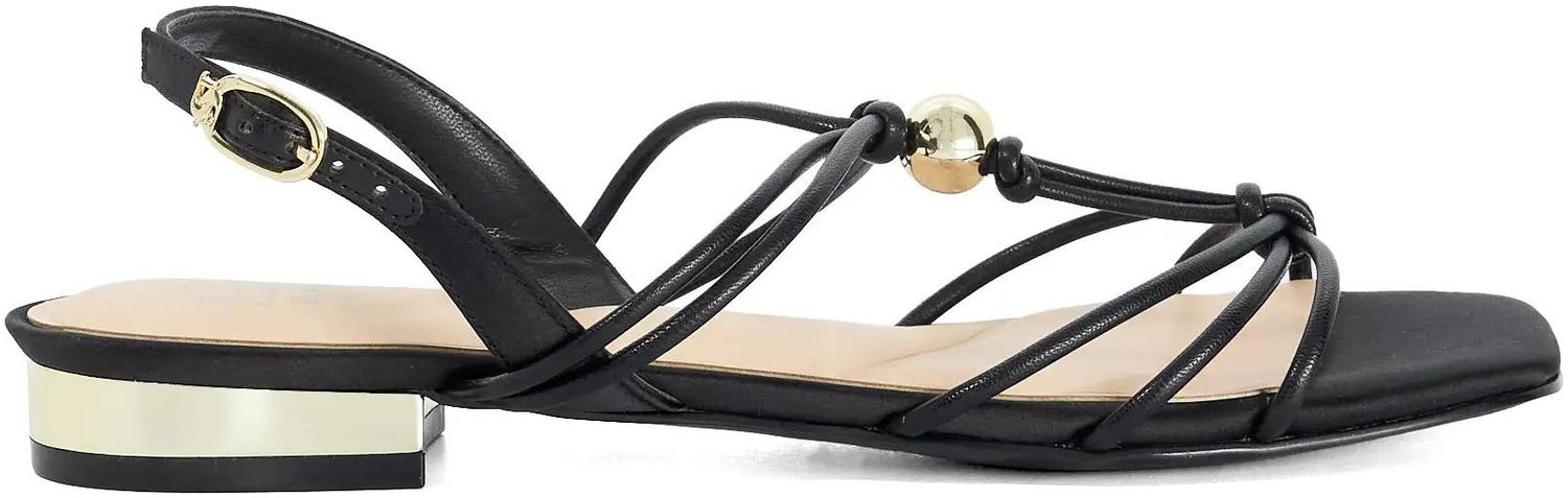 Step into effortless elegance with these black flat sandals. Featuring adjustable ankle straps sophisticated front straps with gold detailing and a low gold heel they're the perfect balance of style and comfort.