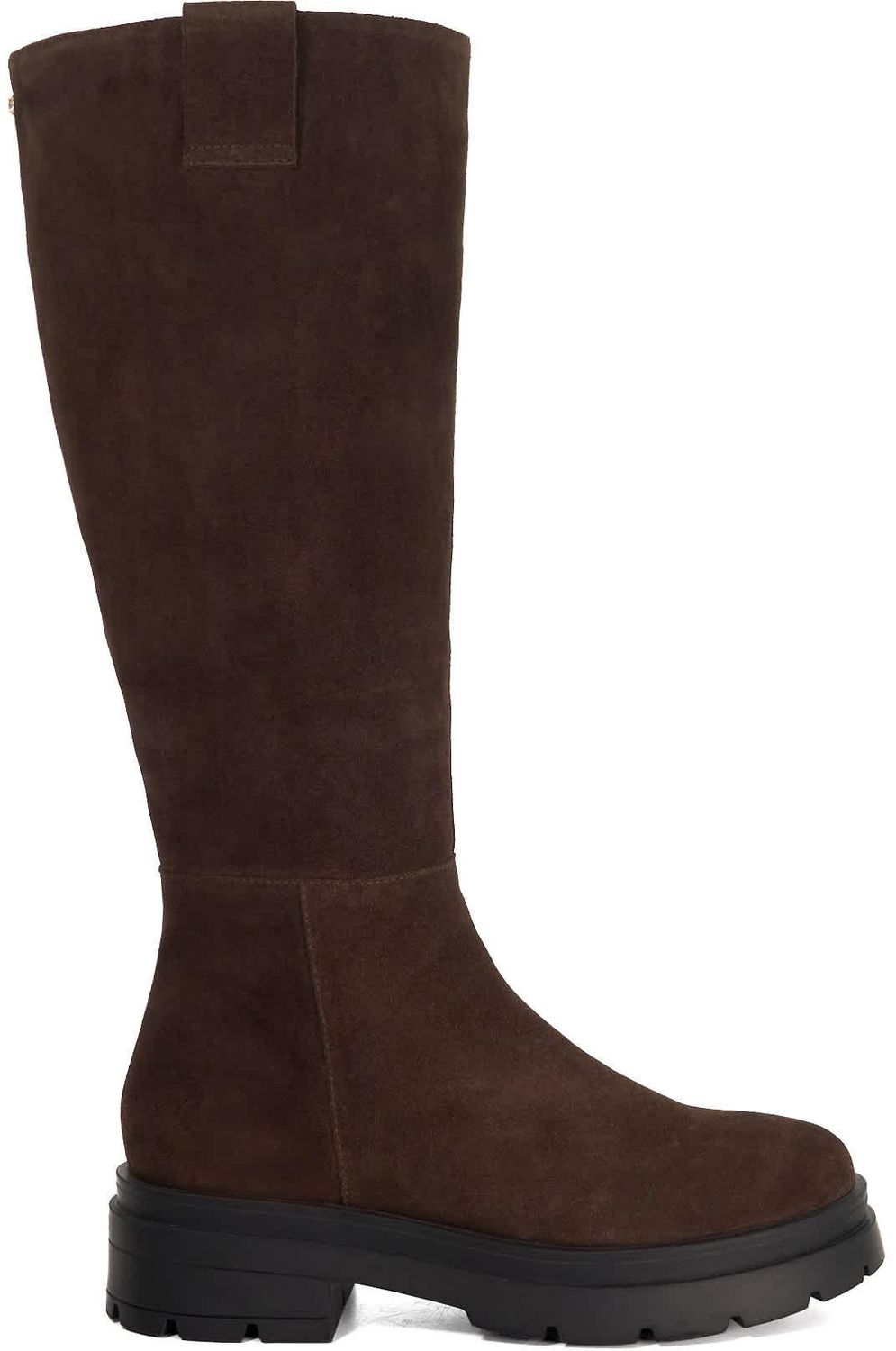 Meet Tiger our bold knee-high boot designed to everyday wear. Available in smooth leather and in supple suede this versatile boot is grounded on a rugged cleated sole and finished with an inside zip and side pull tab for ease and edge.