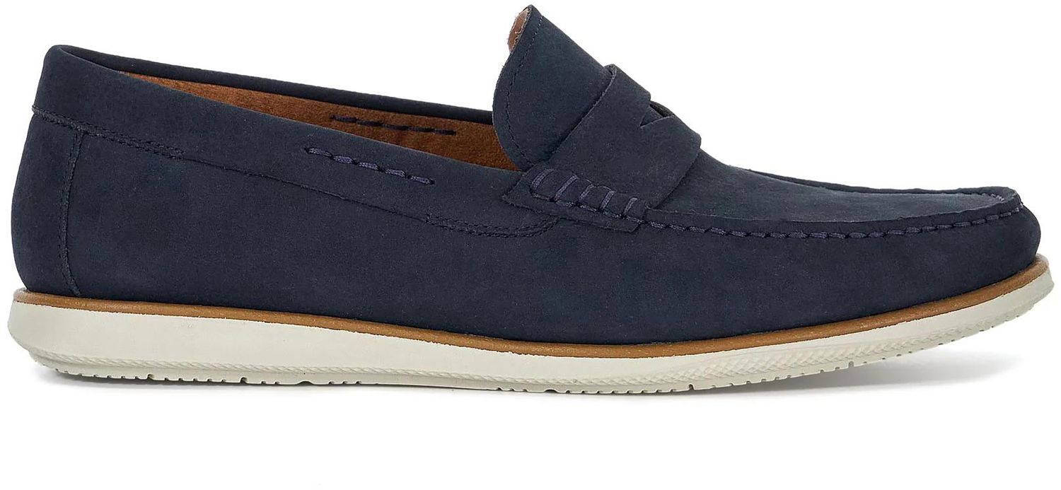 A traditional penny loafer profile fused with a casual rubber sole our hybrid Berkly has been designed with a contrasting trim. Fusing comfort with timeless style this versatile profile will update casual and formal warm weather looks. This key loafer profile is available in premium nubuck and leather.