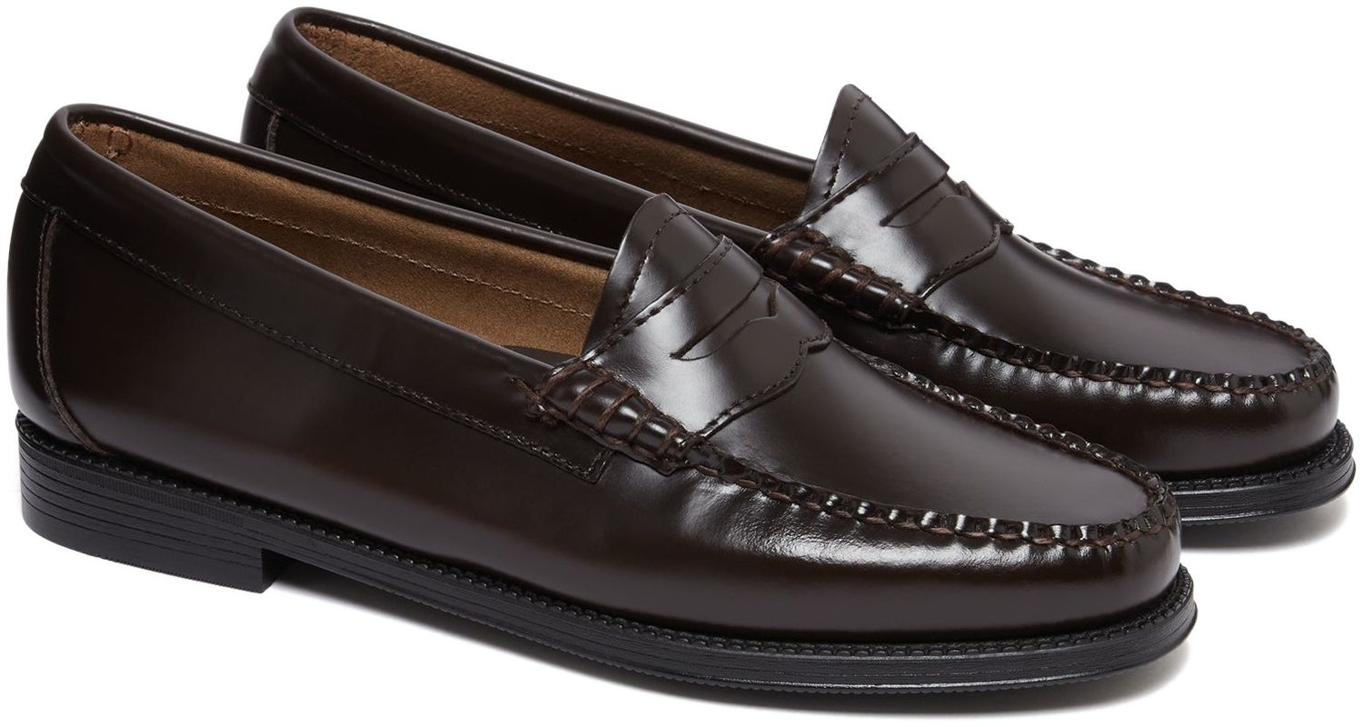 The Easy Weejuns Penny Loafers in smooth chocolate leather offer timeless style with modern practicality. Crafted from hand-polished chocolate leather, these loafers are designed to shine with every wear. Each pair is designed for durability and long-lasting wear, featuring water-resistant rubber soles for enhanced traction and stability. Perfect for navigating unpredictable weather. Inside, a soft leather insock and cushioned insole offer all-day support, while the breathable, unlined interios provide a lightweight feel. A sleek loafer made to take you from the office to the weekend.