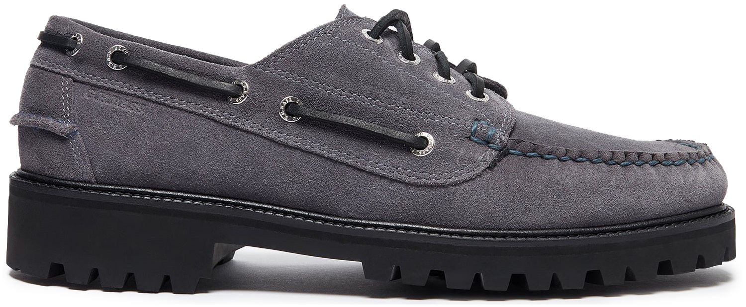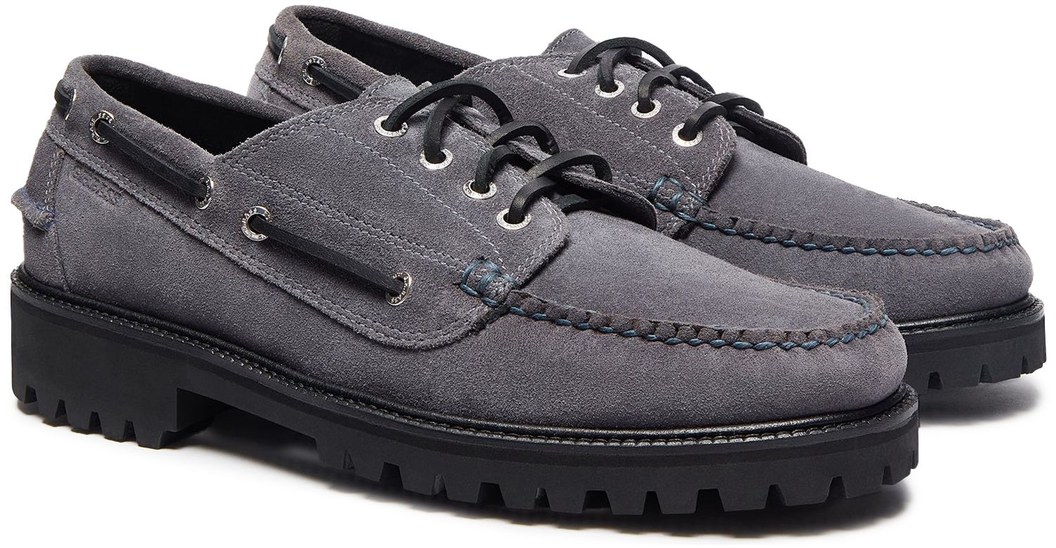 The Ranger Camp Moc in dark grey suede brings together rugged durability, modern comfort, and expert handsewn construction. Made from ultra-soft suede, these moccasins offer everyday ease without sacrificing durability or style. Strong leather laces offer a secure, adjustable fit, while the cushioned insole and soft leather lining ensure long-lasting comfort. Set on an EVA lug outsole, they deliver optimal grip and traction across various terrains. The muted grey tone is perfect for pairing with raw denim, cargo trousers or rolled chinos for an easy, utilitarian look.