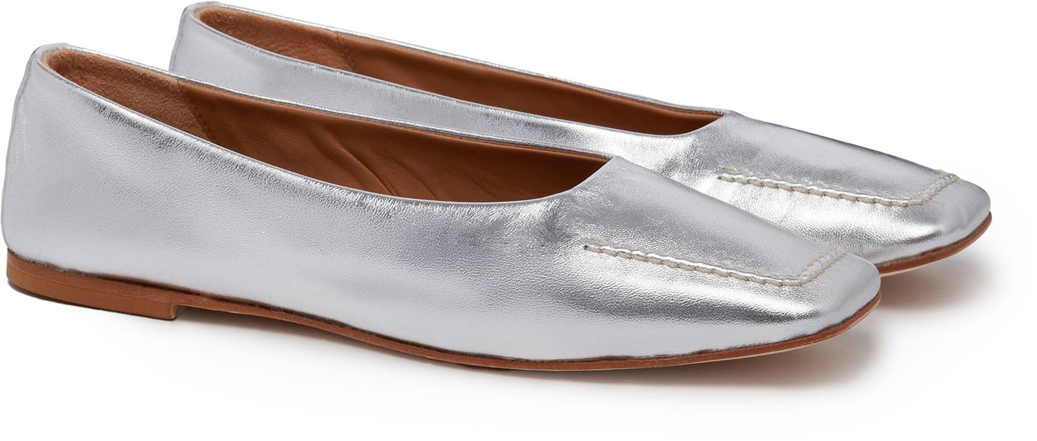 Add a touch of shimmer to your look with the Selma ballet flats in soft silver leather. Crafted from ultra-soft leather. The hand-sewn pinch stitching showcases artisanal flair, while the smooth leather lining and cushioned insole ensures a secure and comfortable fit. The hand-polished, flexible leather sole and a rubber heel pad provide added durability and grip, making them perfect for day-to-night wear. Made in Italy, they embody impeccable Italian craftsmanship.