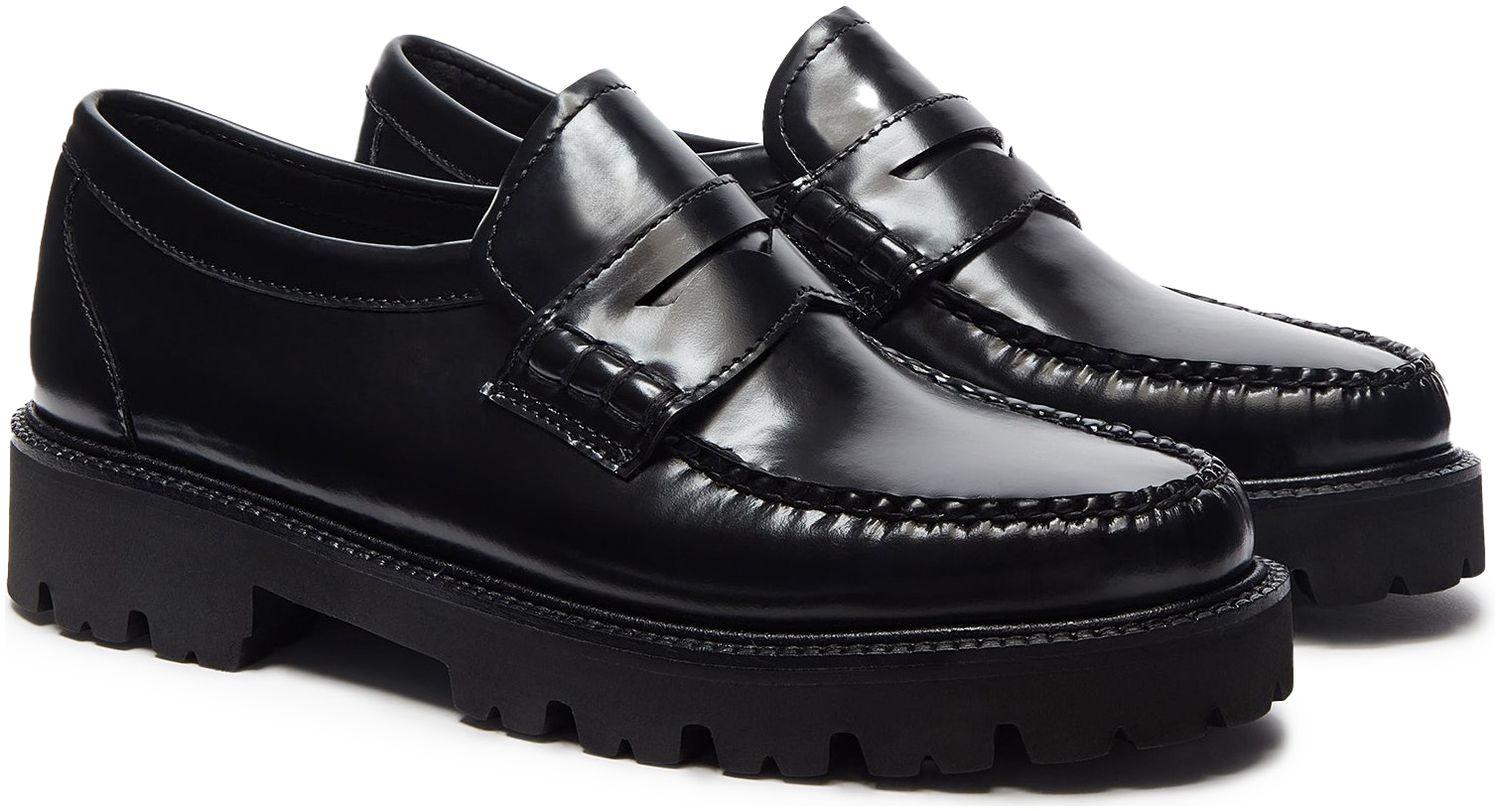 The Weejuns Grace Super Lug Penny Loafers are hand-crafted from sleek, high- shine black leather. Sleek up top, chunky underneath, these loafers are designed to make a statement. Hand-stitched using fray-resistant waxed thread, which not only enhances the shoe’s durability but also adds a refined finish to the seams, highlighting the expert craftsmanship and attention to detail that G.H.BASS is known for. Set on a lightweight, shock-absorbing sole that adds height, grip and a fashion-forward silhouette, the Grace Super Lug is a true statement shoe. Pair with wide-leg denim and a structured blazer for an off-duty style.