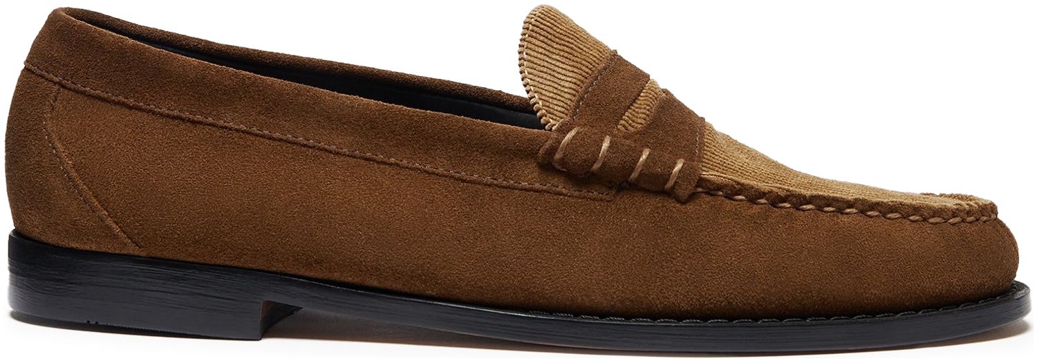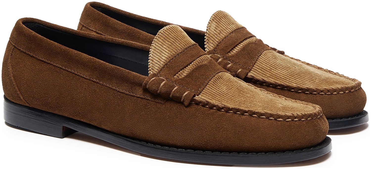 The Weejuns Larson Penny Loafer in dark brown suede and brown corduroy reworks our classic penny loafer silhouette for a new fusion of texture and tradition. Crafted by hand using our original loafer construction methods, these loafers combine a soft suede with vintage corduroy for a distinctive contrast. A cushioned insole and soft leather insock deliver all-day comfort, while the shock-absorbing midsole and polished leather sole add an extra layer of refinement. Pair these with tailored, cropped trousers and a blazer for an effortless smart casual look.