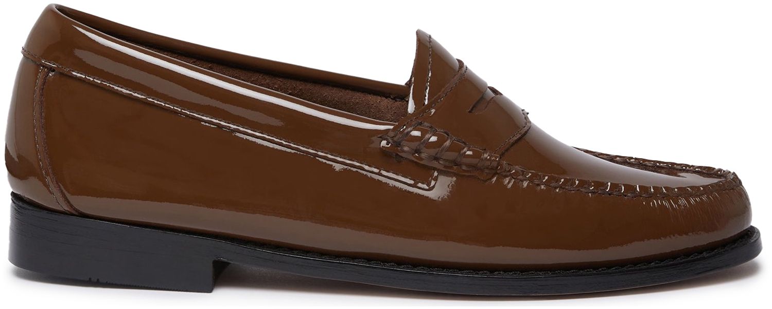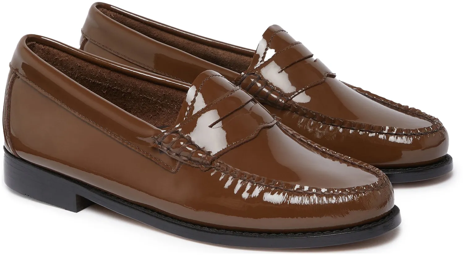 The Weejuns Penny Loafers are expertly crafted in a dark brown patent leather, boasting a glossy finish. Rooted in a tradition that dates back to 1876, each pair is crafted with techniques that have stood the test of time, showcasing our long standing commitment to our craft. Soft leather insoles designed to cradle the feet, provide incredible comfort from day one. Set on a polished leather sole, these women's loafers are a statement of sophistication. Designed to get you from the office to MORE upscale events, style these loafers with navy tailoring or with black party-inspired outfits.
