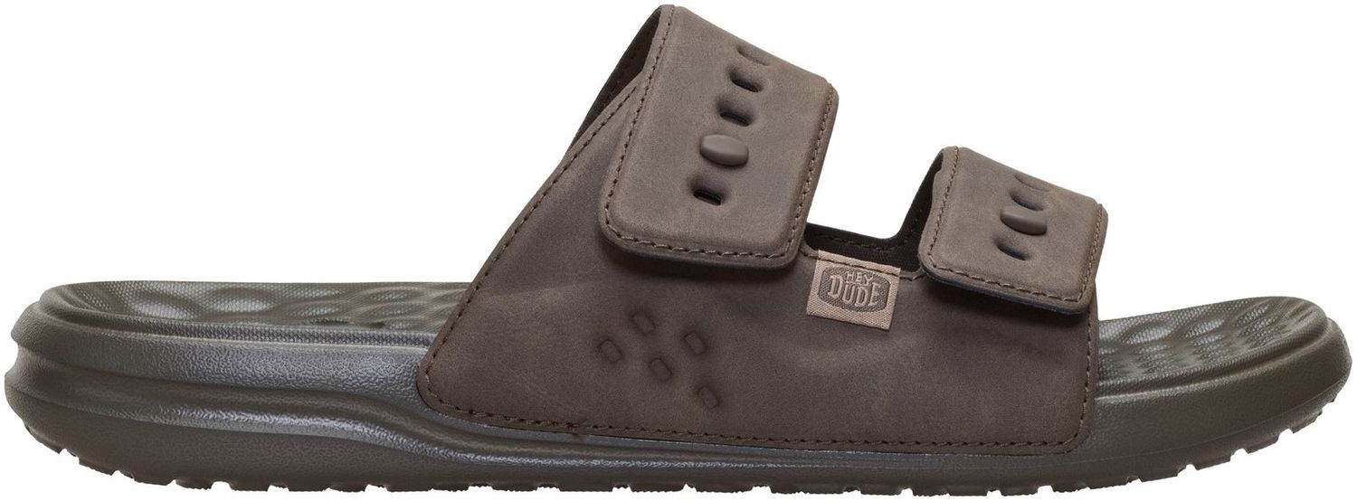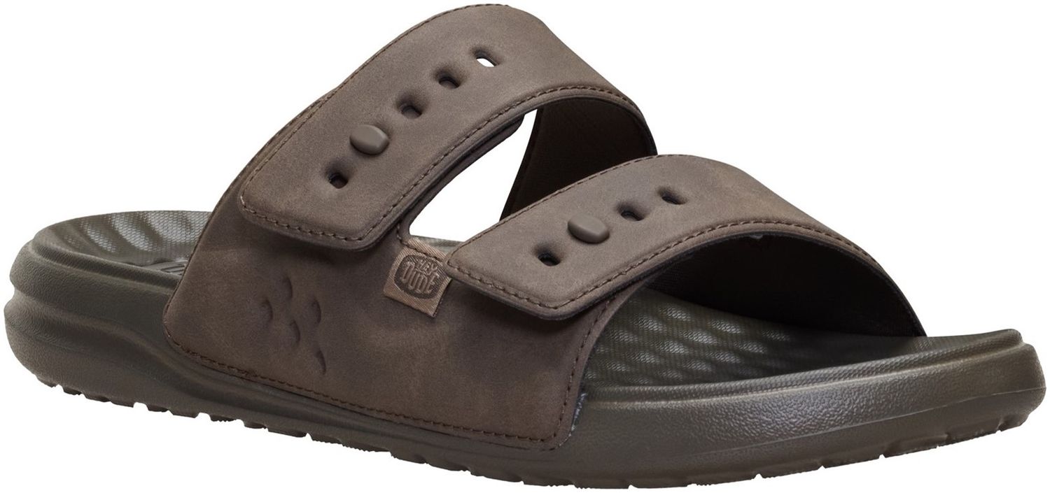 Ready for barbecues, pool hangs and all things summer. These easy slides keep you comfortable thanks to a soft, contoured EVA footbed that cradles your feet. The two-strap upper is adjustable, so you find a perfect fit.