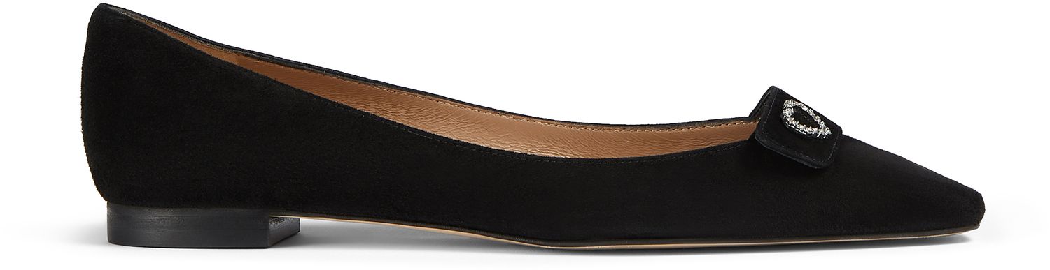 The Amore black heart square toe flat is made from soft kid suede, with a cute crystal heart detail for a touch of charm. Crafted in Spain.