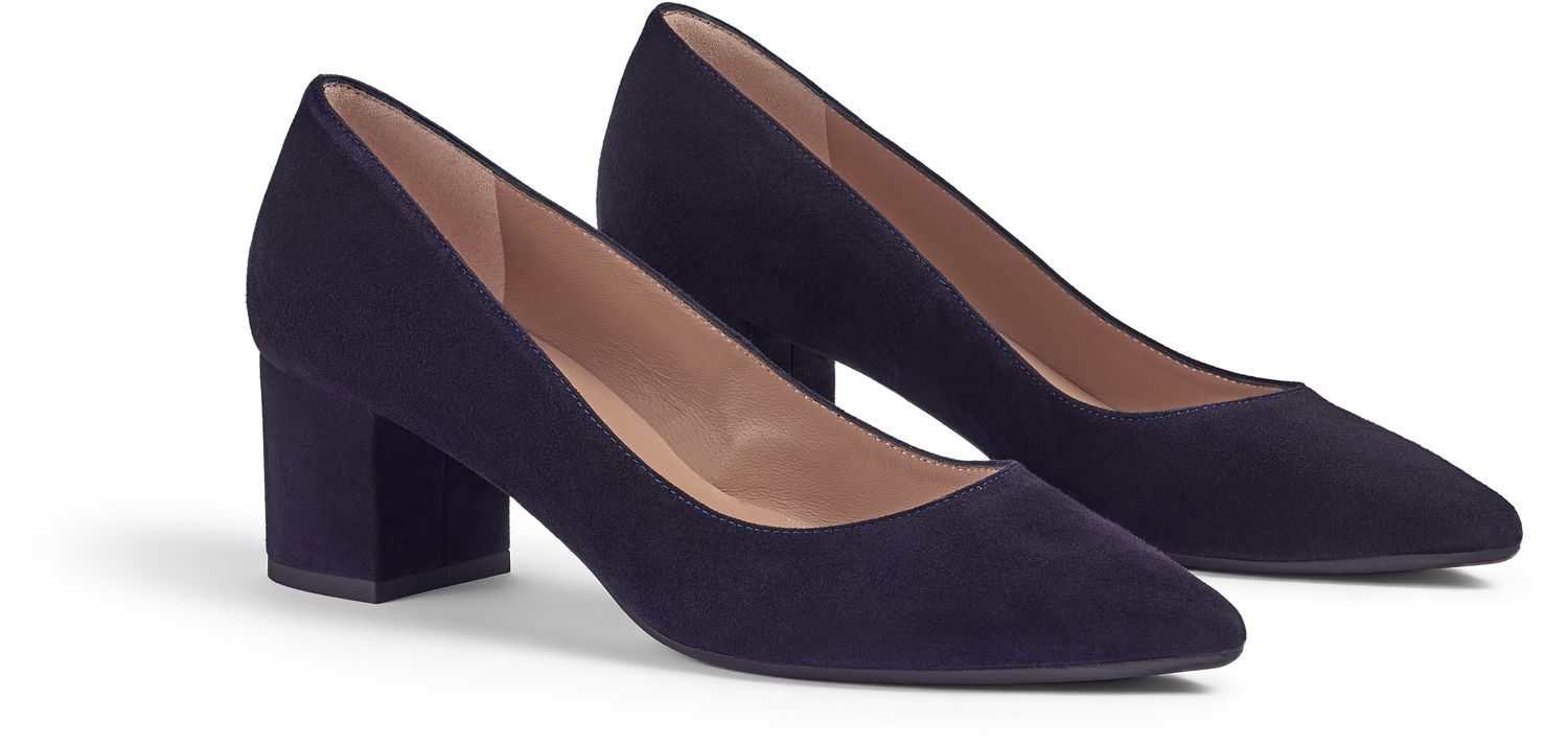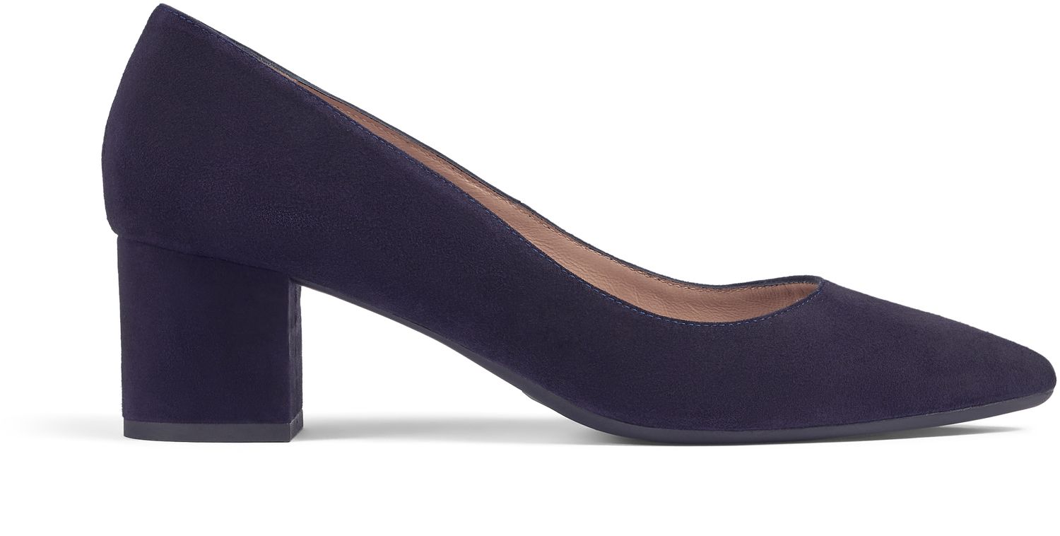 The Clara flexi court in navy suede exudes elegance and sophistication. Perfect for work, these closed courts feature a comfortable block heel, tpu sole, and a luxurious leather lining, making them ideal for the modern professional. Made in Spain.