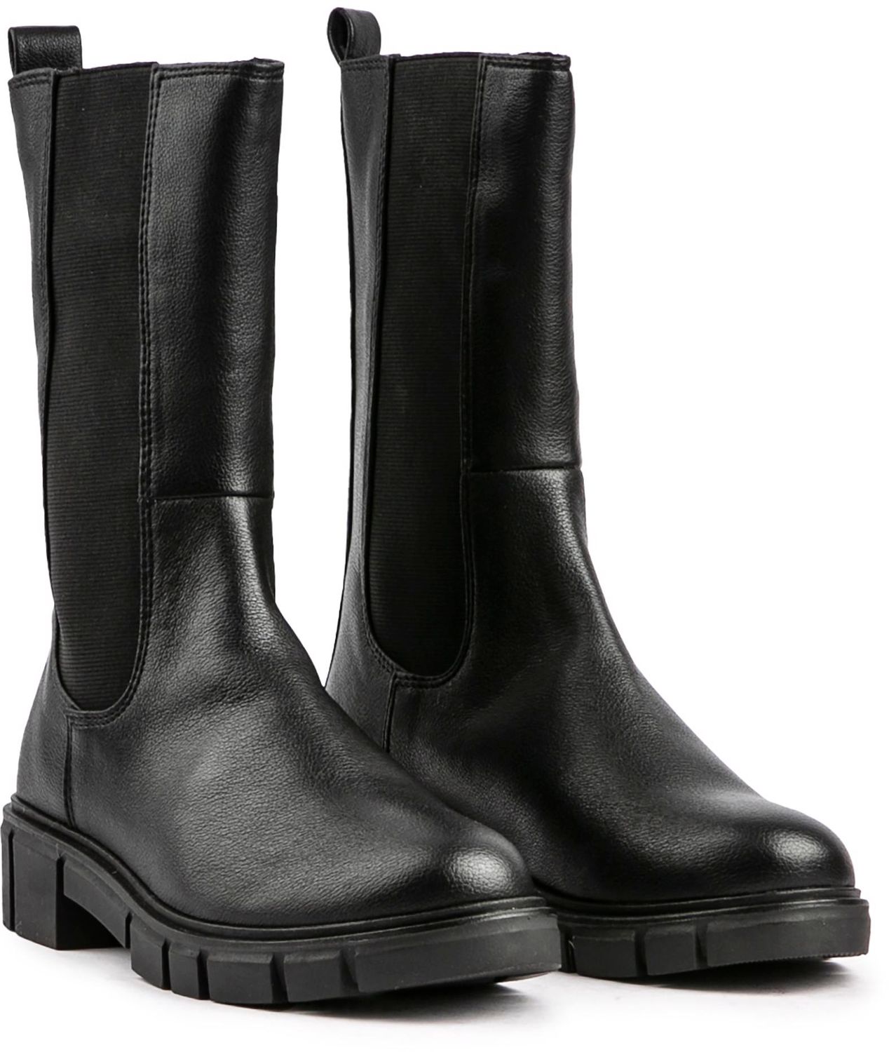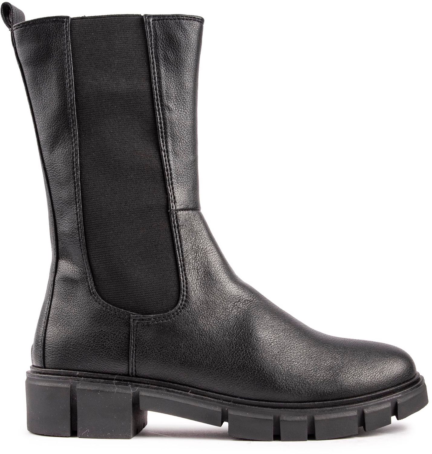 A robust and stylish boot for the new season. the women's Marco Tozzi 25410 boot will see you embrace the city and countryside the fashionable way. The sleek black leather-look silhouette is fully lined. has long elasticated gussets and a comfy fit.