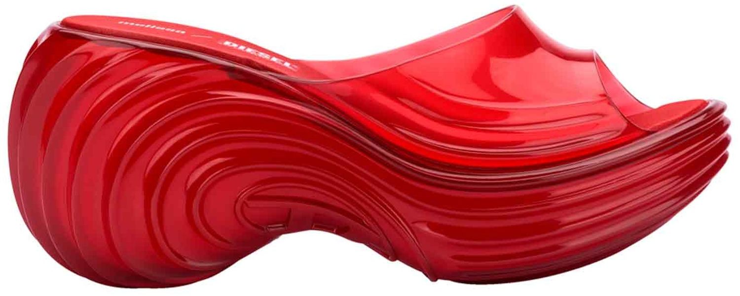 The collaboration between Melissa and Diesel draws inspiration from various elements of fashion, art, and design, incorporating aspects such as parametric design and optical art. The outcome is a collection of three products that feature a futuristic aesthetic, merging the identities of both brands. The D monogram serves as an aesthetic and signature element of this partnership, resonating with the trends favored by young consumers and Generation Z.