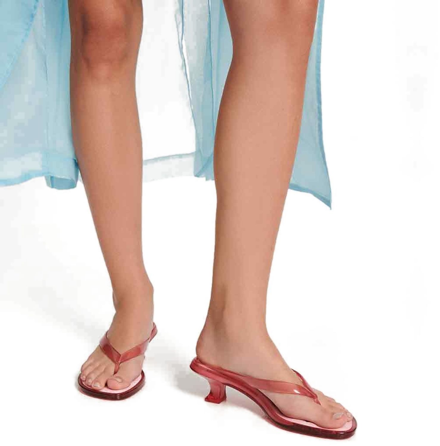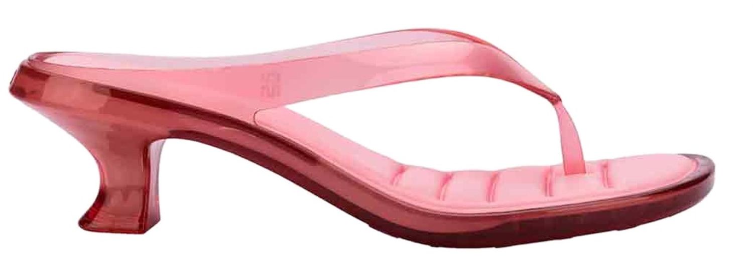 The Melissa Thong Kitten Heel brings to life one of today's top trends: kitten heels, making a comeback on runways and streets as a symbol of practical and elegant femininity. Featuring thin flip-flop-style straps and a low curved heel, the design embraces a refreshed nostalgic look. Melissa's signature jelly finish takes on a sophisticated twist with transparency and a soft shine, enhancing the models fashion-forward and versatile appeal perfect for effortlessly transitioning from day to night.
