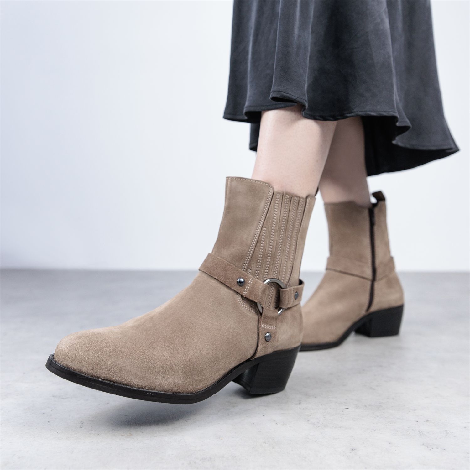Look picture perfect in Pailia. This short Western inspired boot features a classic Cuban heel and a buckle harness for added style. The zip fastening ensures effortless foot entry whilst the leather sock provides all-day comfort.