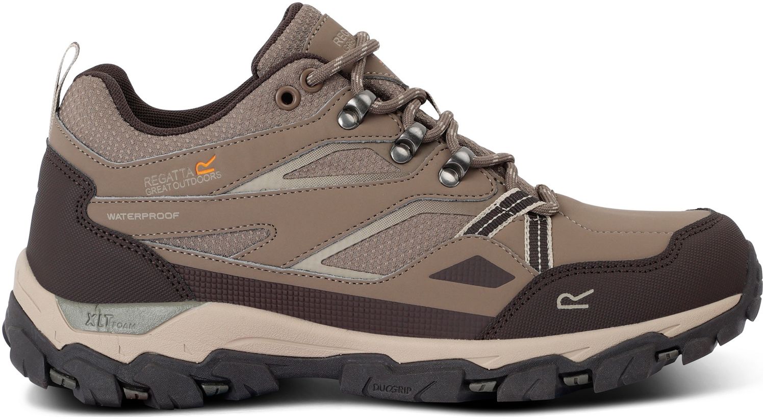 The Holcombe III Low women's hiking trainers from Regatta are perfect for active lifestyles. The comfy technical synthetic upper features a water- resistant finish, perfect for unpredictable weather. You'll have comfort thanks to the padded foam collar and tongue and TECFOAM openfoam insock. Your feet will stay fresh with the ISOTEX membrane offering breathable waterproofing. Protection is delivered by the technical synthetic toecap and heel, and the XLT technology midsole helps reduce impact with every step. Whether you're hiking or on the trail, the Duo Grip outsole on the ladies walking trainers provides superior traction on various terrains.