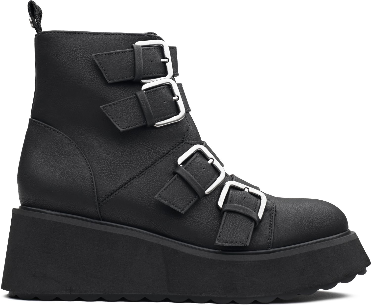 Let your style stand out and dare to get noticed, in the Rocket Dog Heather ankle boots. Crafted from a supple leather-look upper, with multiple metal buckles and decorative trims, these boots make a fierce fashion statement. Strut your stuff in the sleek silhouette, with its chic platform sole and wedge heel for an elevating look.