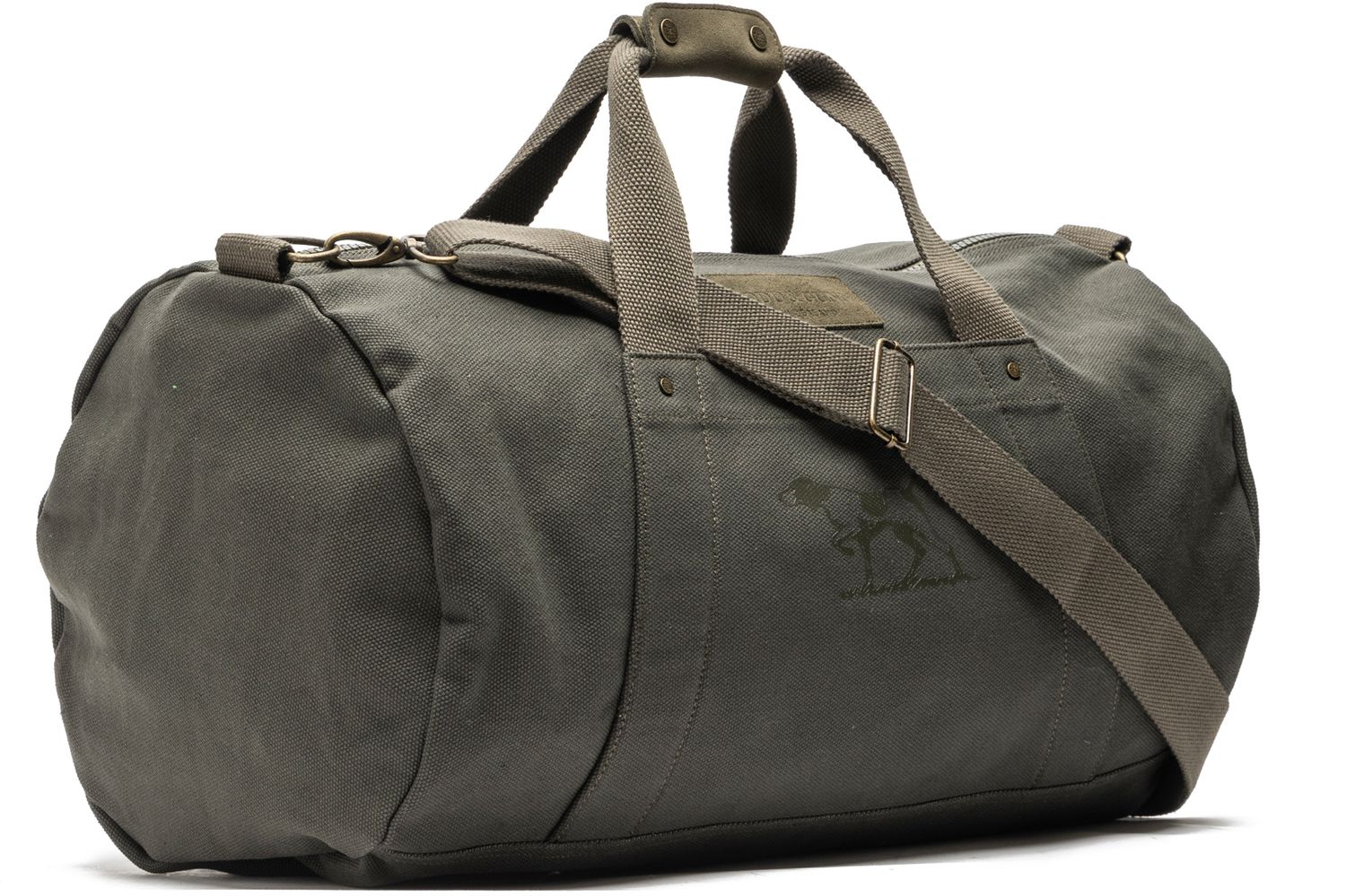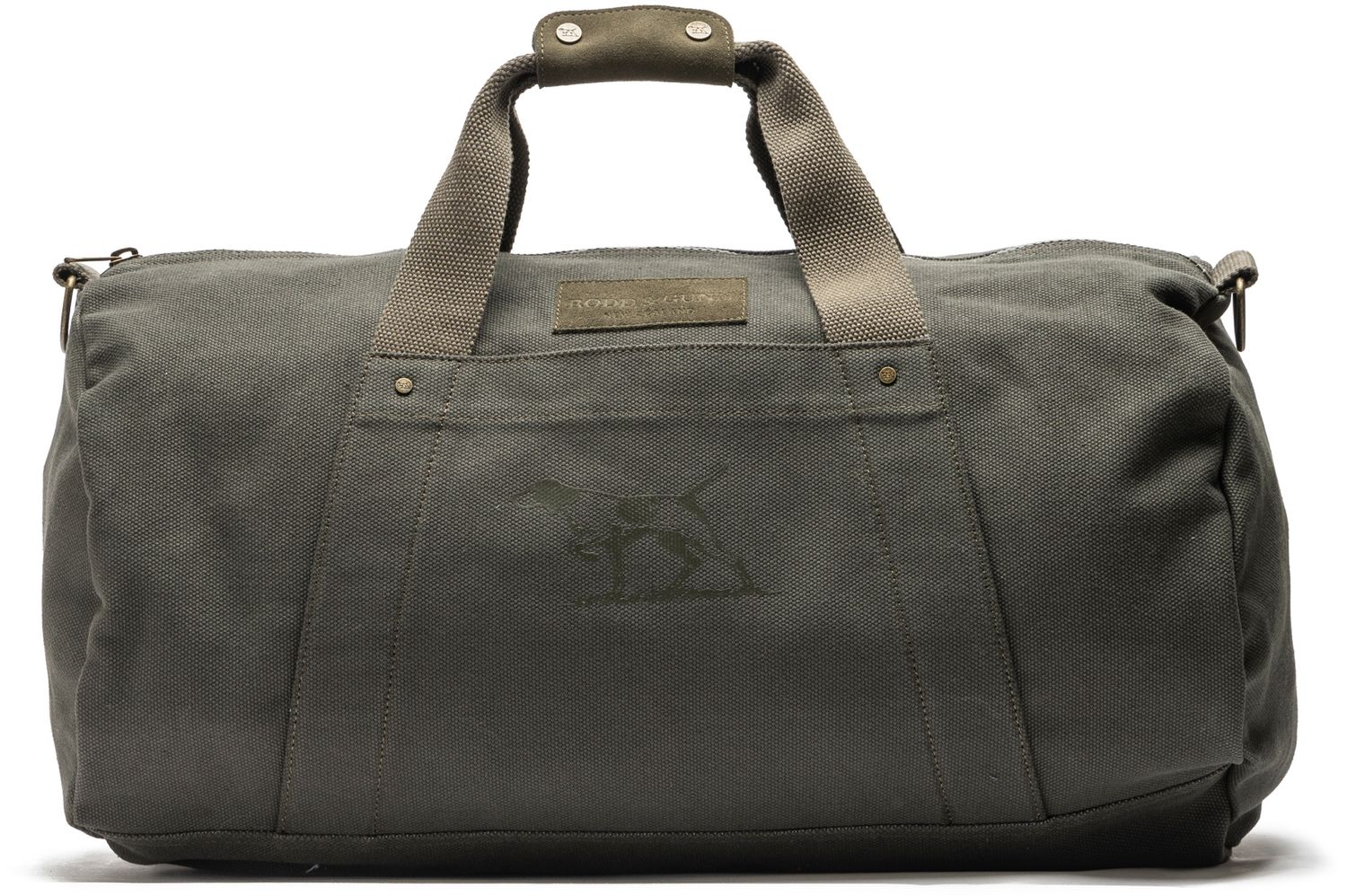 Rodd & Gunn's Ponsonby Road Duffle is crafted from heavy weight canvas, features an external pouch pocket between the angled handles on the outer side with a tonal printed Pointer logo, suede handle wrap, and a Rodd & Gunn embossed suede patch. A large zipper opening allows easy entry into the circa 43 litre capacity interior, that includes a zipped pouch for storing valuables. The outer is trimmed with antiqued and/or colour coded hardware.