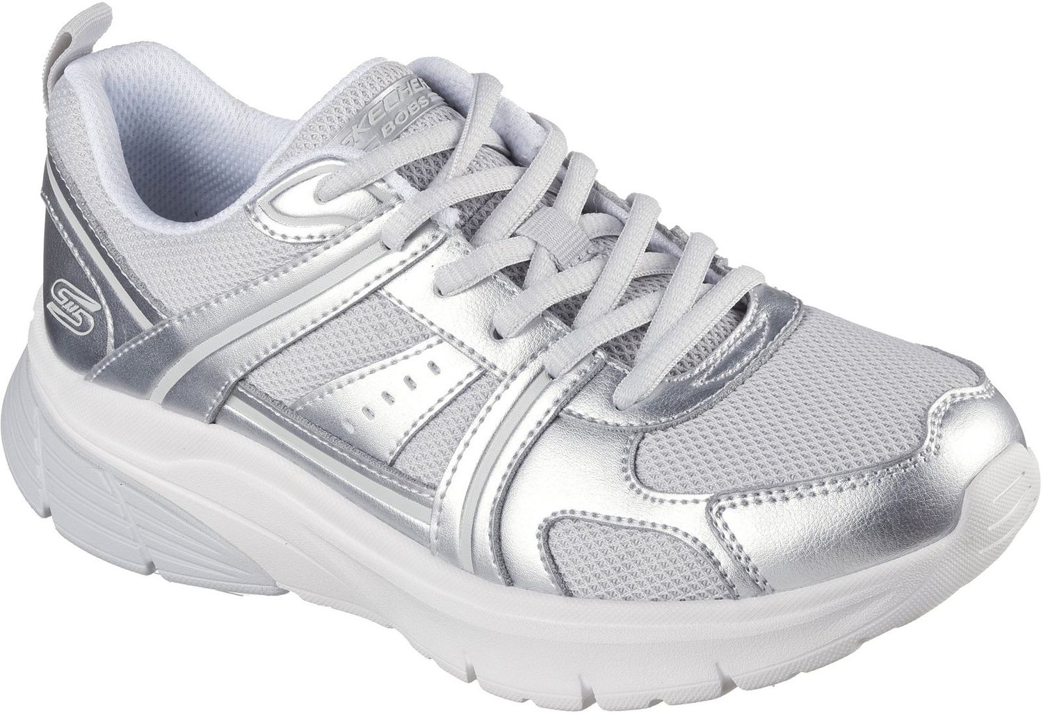 Give back and get moving in superior comfort with Skechers BOBS Sport Vamos. This sporty lace-up style features a mesh upper with synthetic overlays and a cushioned Skechers Memory Foam insole.