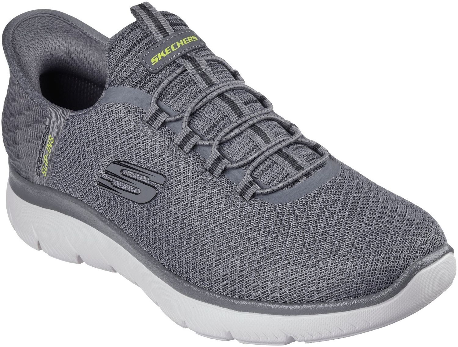 Go handsfree and step into easy-wearing comfort with Skechers Slip-ins: Summits. Featuring a mesh upper with a Skechers Slip-ins heel panel and a cushioned Skechers Air-Cooled Memory Foam insole.